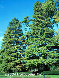 Metasequoia glyptostroboides The Dawn Redwood tree, Metasequoia glyptostroboides, is a deciduous conifer, with soft needle-like leaves that look like evergreens, but are bright green in the spring and brilliant orange/red in the fall. The needles are shed in the cold season of winter. Dawn Redwood trees are a very ornamental and interesting large tree, one of the few deciduous conifers in the world. It is feathery pyramidal in form with a straight, fluted trunk. It grows very fast to 40’ and can grow to 70’. The bark is red- brown, fissured and exfoliating in long strips. It is a beautiful and stately tree, well suited for large areas. It makes a very effective, fast growing screen, perfect as a long driveway alley. This tree does best in full sun and when provided with adequate moisture. The Dawn Redwood has been called "a living fossil" because it was first discovered in Japan in 1941 and then found growing in the wild in China. The species is over 50 million years old. It is a very hardy tree and tolerates windy sites. |